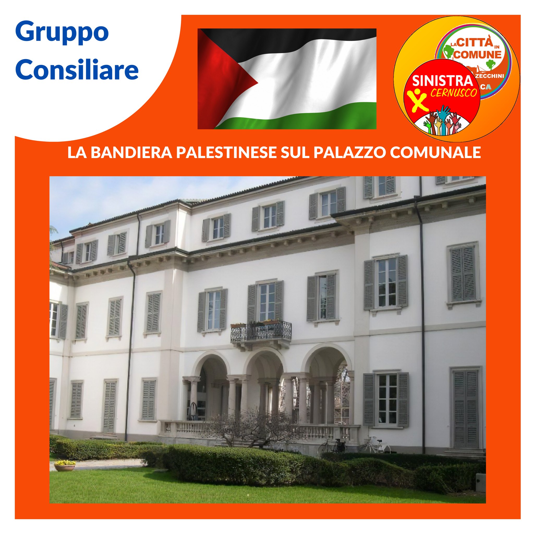 La Bandiera Palestinese sul Palazzo Comunale